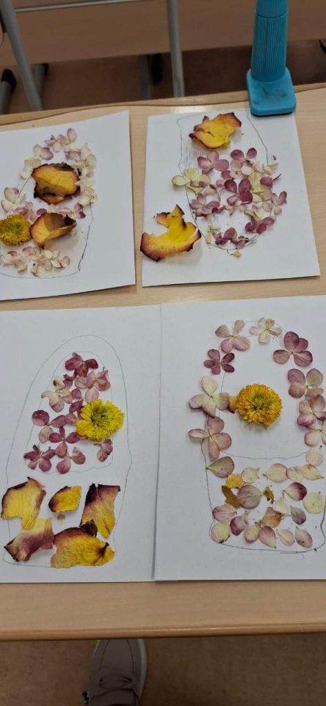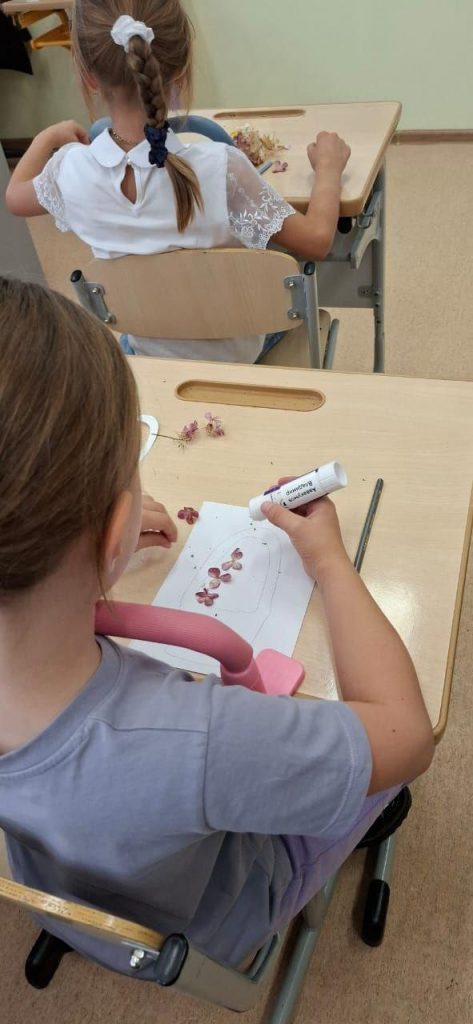 В рамках тематической недели:» Творческая мастерская: творчество и коммуникация» в 1 «Э» классе состоялось занятие по изготовлению открытки из засушенных трав и цветов. Решили подарить их и бабушками и дедушкам на День пожилого человека.
