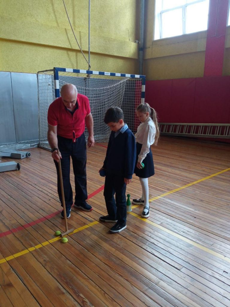На неделе «Марафон:движение и здоровье» ученики 4ДЭ класса осваивали правила игры в крокет. Крокет — спортивная игра, в которой участники ударами специальных молотков на длинной ручке проводят шары через воротца, расставленные на площадке в определённом порядке. Цель игры — в соответствии с правилами провести свой шар по определённому маршруту быстрее соперника.